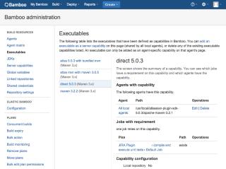 - Es ist außerdem möglich, das vom SDK gelieferte atlas-mvn als mvn Executable zu verwenden. Dazu muss ein Verzeichnis erstellt werden (z.B. …/wrapper/), welches ein Verzeichnis bin erhält, in dem ein symbolischer Link namens mvn erzeugt wird, der auf das atlas-mvn Kommando verweist, z.B. …/atlassian-plugin-sdk-5.0.3/bin/atlas-mvn. In Bamboo muss dann ein Maven-Executable erstellt werden, dass auf den neuen Pfad (…/wrapper) verweist.