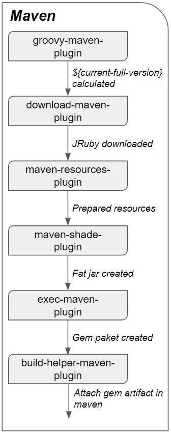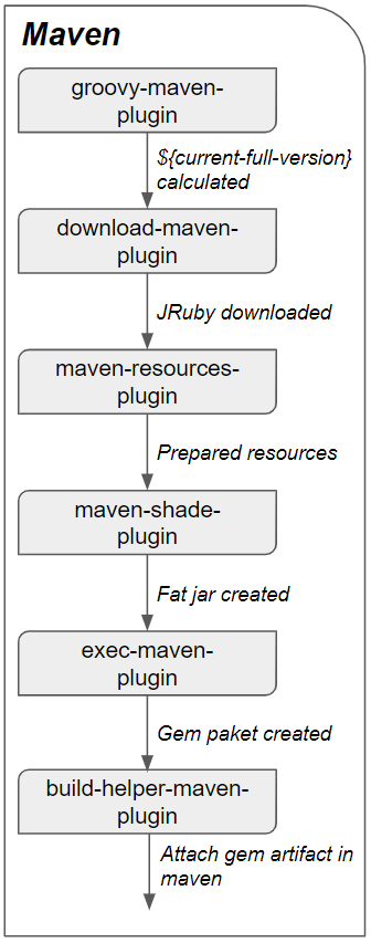 Hier ist eine unnötige Verkettung von Build-Tools zu sehen, da Maven Gradle ausführt und dieses im Anschluss wiederum Maven aufruft. Daher haben wir beschlossen, den Gradle-Teil des Build-Prozesses ebenfalls in Maven umzusetzen, sodass sich folgender Ablauf ergibt:
