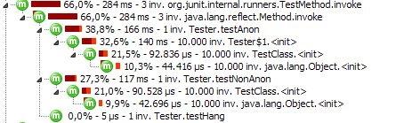 Genauer gesagt hat dieses Vorgehen sogar probleme. Jede Instanz hat seine eigene Klassendefinition, welche zur Laufzeit erstellt werden muss, was eine etwas längere Erstellungszeit nach sich zieht. Ausserdem ist der Speicherverbrauch etwas größer und getClass().getName() liefert natürlich einen anderen Namen.