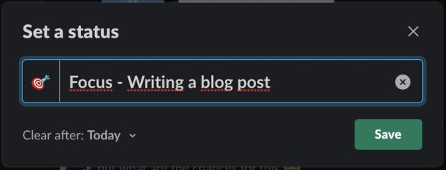 Wenn wir den asynchronen Weg benutzen, dann erwarten wir von unseren Kollegen keine unmittelbare Rückmeldung. Eine solche Erwartungshaltung würde diese nicht-unterbrechende Art der Kommunikation unterminieren, die wir (hoffentlich) ganz bewusst gewählt haben. Es ist völlig in Ordnung auch erst ein oder zwei Stunden später zu antworten, wobei wir dafür bewusst keine exakten Regeln festgelegt haben. Das setzt natürlich voraus, dass jeder in unserem Team verantwortungsbewusst mit seinen Benachrichtigungen umgeht. Wenn man bei jeder Nachricht zum Handy greift oder den Messenger öffnet, dann kann asynchrone Kommunikation nicht ihre volle Wirkung für die Zusammenarbeit im Team entfalten. Daher nutzen wir gerne auch mal die Möglichkeit unsere Kommunikationsprogramme auf stumm zu stellen oder auszuschalten, wenn wir uns fokussieren wollen. Alternativ nutzen wir, gerne auch zusätzlich, die Funktion unseres Messengers, einen Status zu signalisieren (siehe Bild unten).