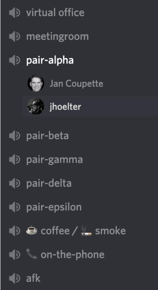 Unsere wichtigste Vereinbarung ist: Wir tragen immer unser Headset, wenn wir regulärer Arbeit nachgehen. Zumindest haben wir immer ein Auge auf unser Kommunikationswerkzeug, um zu sehen, ob jemand unser „virtuelles Büro“ betritt oder signalisiert wird, dass jemand spricht. So können wir das Headset schnell aufsetzen und zuhören. Letztlich analog zu dem im Großraumbüro verbreiteten Noise Cancelling Headset, das man zum gleichen Zweck absetzt. So kann man die Person, der man eine Frage stellen möchte, ebenso einfach ansprechen als säße man direkt nebeneinander.