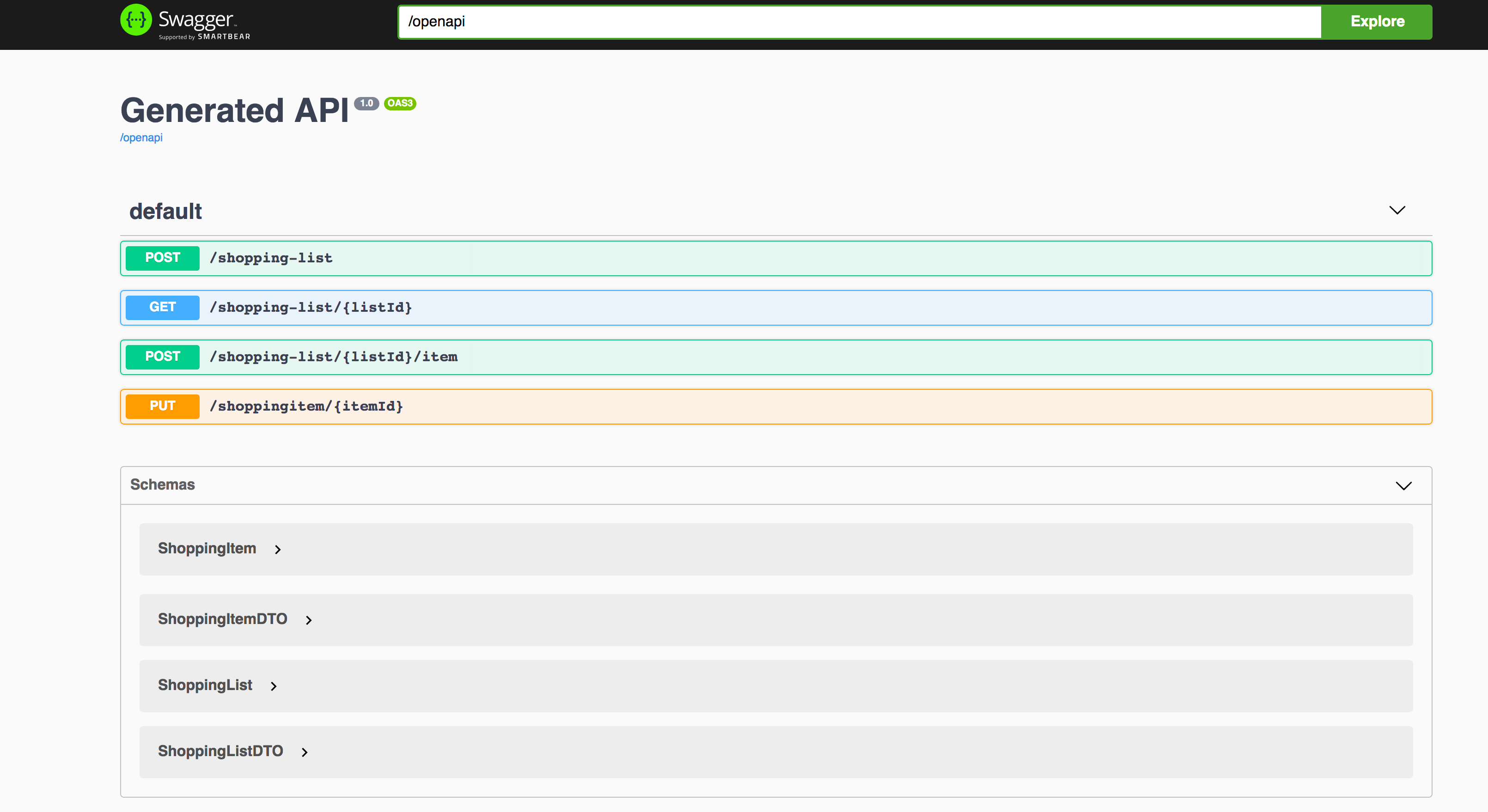 Durch die OpenApi- und Swagger-Extensions wird ohne zusätzliche Konfiguration eine Beschreibung der Schnittstellen unter http://localhost:8080/swagger-ui bereitgestellt.