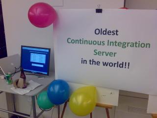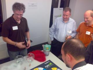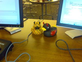 Abends hatte ThoughtWorks zum Open House geladen. An dieser Stelle nochmal vielen Dank für die Möglichkeit und den tollen Empfang. Bei Essen und Getränken ergaben sich an den vorbereiteten Themenecken viele gute Diskussionen. Unter anderem war der älteste Continuous Integration Server der Welt zu sehen, behauptete jedenfalls Martin Fowler in der Eröffnungsrede. Witzig waren auch die Devil Duckies, „Rubberducking“ ist eine Technik des Pairprogrammings, wenn man gerade keinen zum „pairen“ hat, dann erzählt man eben alles seiner Quitscheente. Schon Ernie wusste damals, was gut ist.