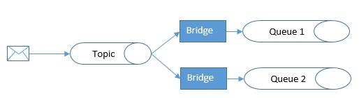 TIBCO EMS kennt zusätzlich zu Queues und Topics noch sogenannte „Bridges“. Eine Bridge besitzt stets eine Quelle und ein Ziel (Jeweils Queue oder Topic). Hiermit lässt sich folgendes innerhalb des Transports umsetzen: