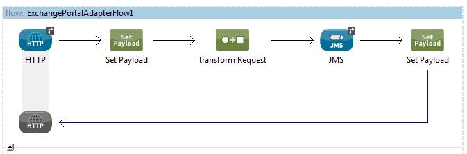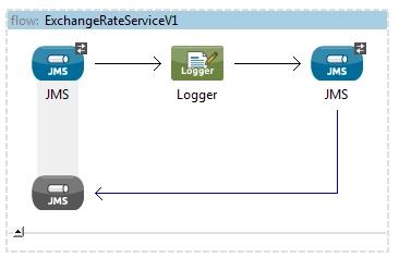 Legen wir nun eine zweite Mule Komponente namens „ExchangeRateServices“ an und fügen die ActiveMQ-Dependency sowie den JMS Connector wie oben hinzu. Da wir bis jetzt noch keine weitere Logik (z.B. Routing, Splitting) benötigen, brauchen wir nicht mehr als einen JMS-Empfänger sowie einen JMS-Sender: