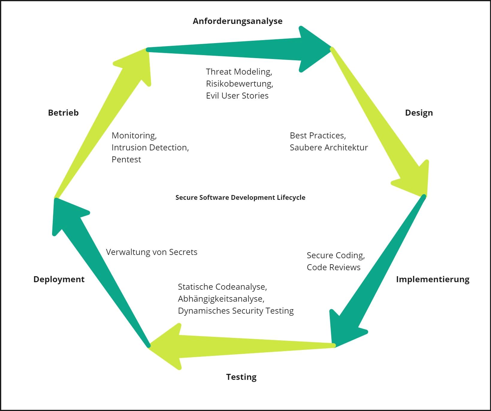 Awareness zu haben ist wichtig und ein guter Start. Jetzt stellt sich noch die Frage, wie wir Security in unser Tagesgeschäft integrieren. Hier ist das Schlüsselwort Regelmäßigkeit. Den Prozess einer Schwachstellenanalyse, Auswertung und Behebung der Findings einmalig durchgeführt zu haben, ist der Einstieg – aber leider nur von kurzzeitigem Wert. Im Laufe eines Projekts ändert sich häufig die Architektur der Systeme und die Menge der verwendeten Bibliotheken steigt. Auch konkrete Implementierungen werden angepasst. Mit jeder Zeile Code kommen mögliche neue Schwachstellen hinzu. Auch die Angreifer*innen lernen stetig dazu und entdecken neue Schwachstellen. Threat Modelings müssen regelmäßig durchgeführt werden und der Outcome muss immer wieder in unseren Backlog wandern. Die Form kann hierbei vielfältig sein, zum Beispiel können die Findings als reguläre Backlog-Items (z. B. „Endpunkt A muss mit einer Authentifizierung gesichert werden“) erfasst werden. Eine andere Möglichkeit sind auch sogenannte Evil User Stories. Das sind aus der Sicht eines Angreifers formulierte User Stories, die ungewollte Zustände oder aktuelle Sicherheitslücken beschreiben (z. B.: „Ich als User*in möchte nicht nur meine eigenen Daten, sondern auch die Daten aller anderen User*innen sehen und verändern können“). Einmal eingeplant, dürfen diese Stories nur in die Done-Spalte wandern, wenn diese Sicherheitslücke nicht mehr besteht. Wie man diese Themen platziert ist zweitrangig. Der wichtige Punkt ist, die sicherheitsrelevanten Prozesse in den Projektablauf (Secure Software Development Lifecycle) einzubinden. Wiederkehrende, professionelle Pentests gehören ebenfalls dazu.