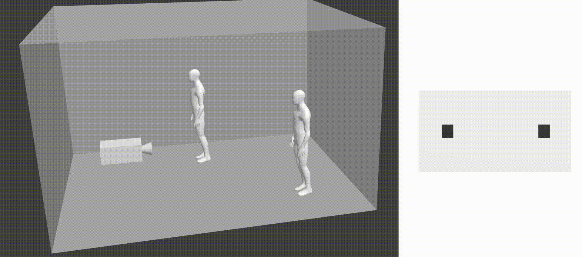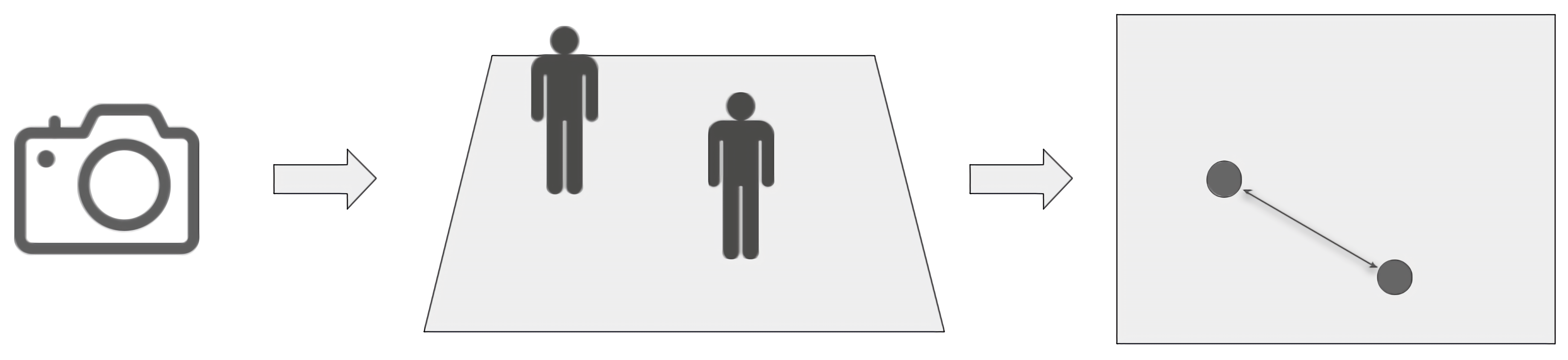 Die meisten Kameras führen die Aufnahme nicht aus der Vogelperspektive, sondern von vorne oder von der Seite durch. Distanzen, die mit den Koordinaten aus diesem Kamerabild berechnet werden, sind perspektivisch inkorrekt. Durch den Kamerawinkel sind Personen, die nebeneinander stehen, im berechneten Wert weiter voneinander entfernt als Personen mit der gleichen Distanz hintereinander. Es geht sogar so weit, dass das Ergebnis mit einem flacheren Kamerawinkel immer schlechter wird. Der dabei entstehende Fehler ist in der dargestellten Animation zu erkennen.