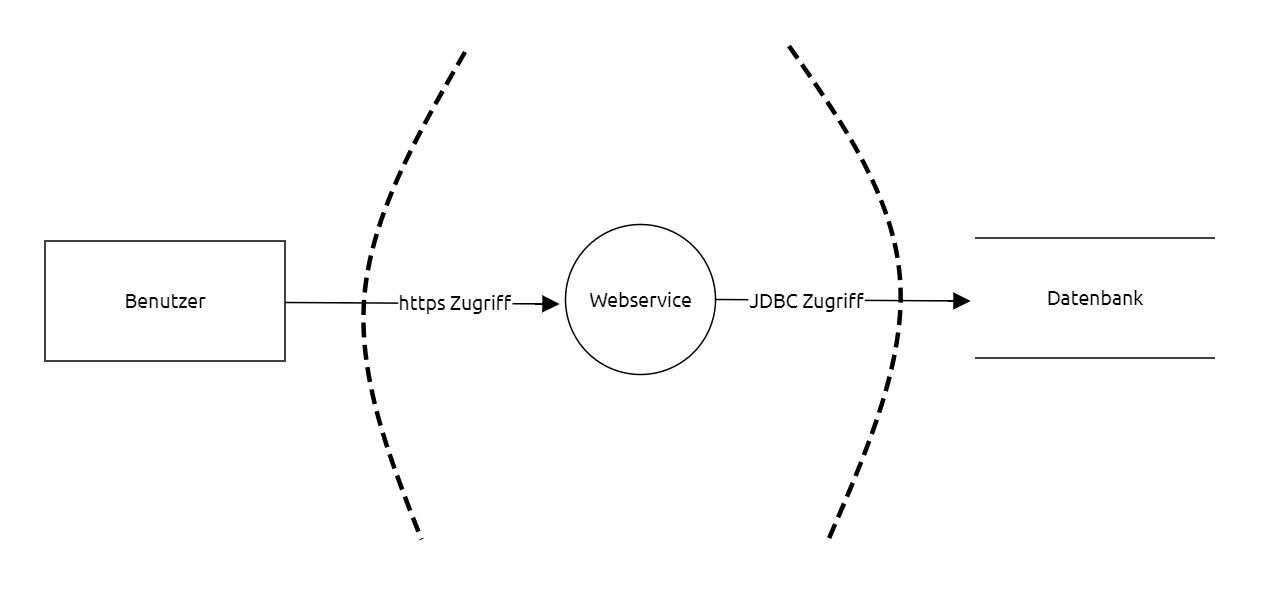 - Trust Boundaries einziehen (Wo werden Vertrauensgrenzen zwischen Systemen passiert?)