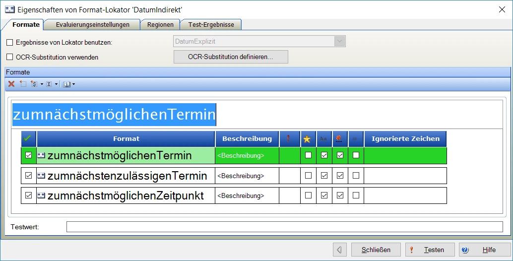 Mit diesem Konstrukt muss man dann nur noch die Formulierungen im Lokator ‚DatumIndirekt‘ pflegen. Es werden dann alle Formulierungen sowohl mit als auch ohne ’störenden‘ Zeilenumbruch gefunden.