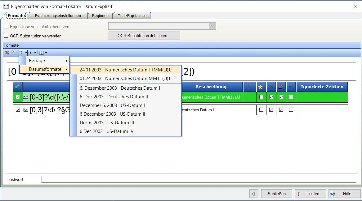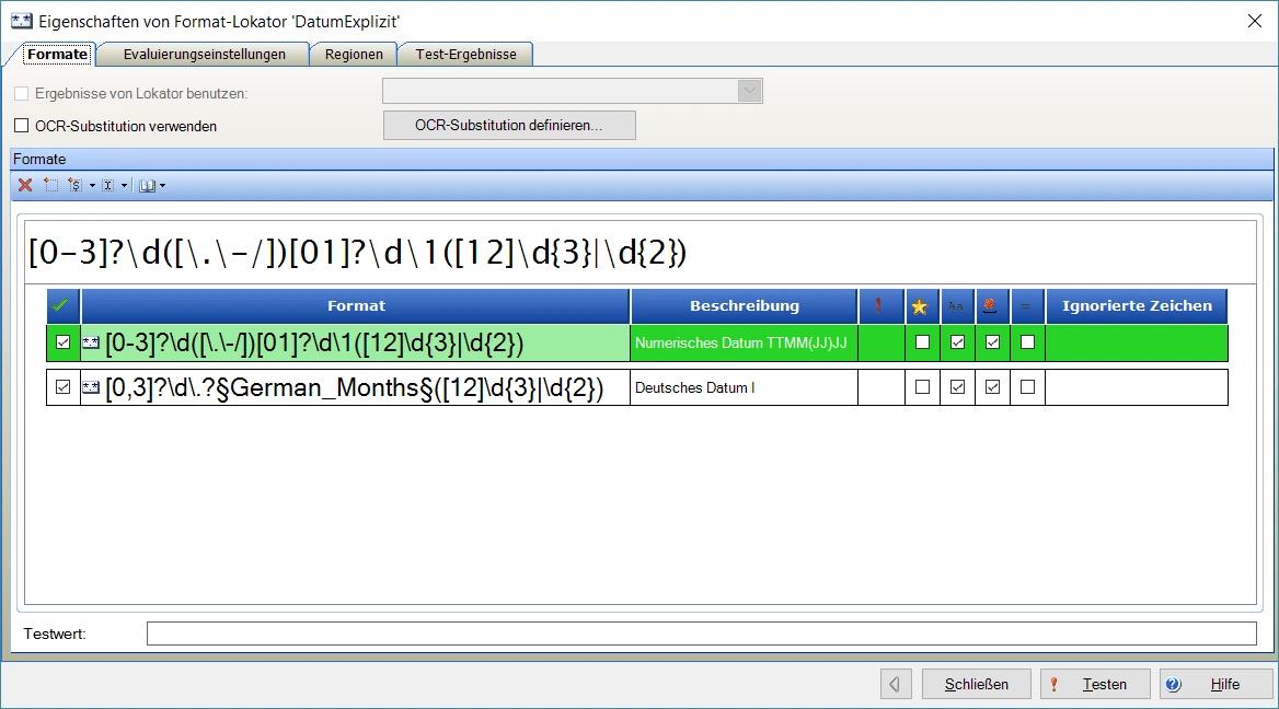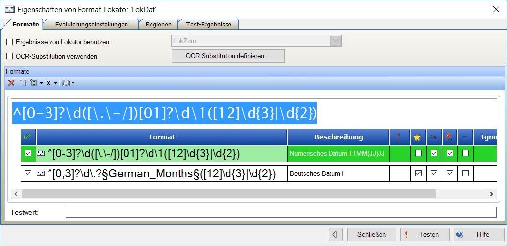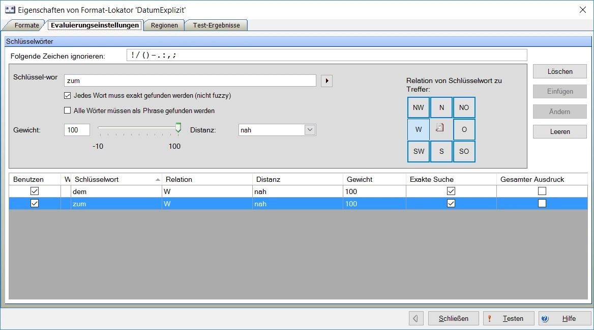 Nun kann mit einem Geometrieevaluator nach allen Datumsangaben unterhalb des Wort-Formatlokators gesucht werden: