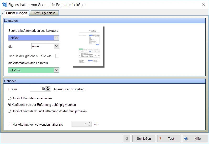 Alternativ zum Geometrieevaluator könnte per Skript überprüft werden, ob das Resultat des Datums-Formatlokators eine Zeile unterhalb des Ergebnisses des Wortlokators liegt.