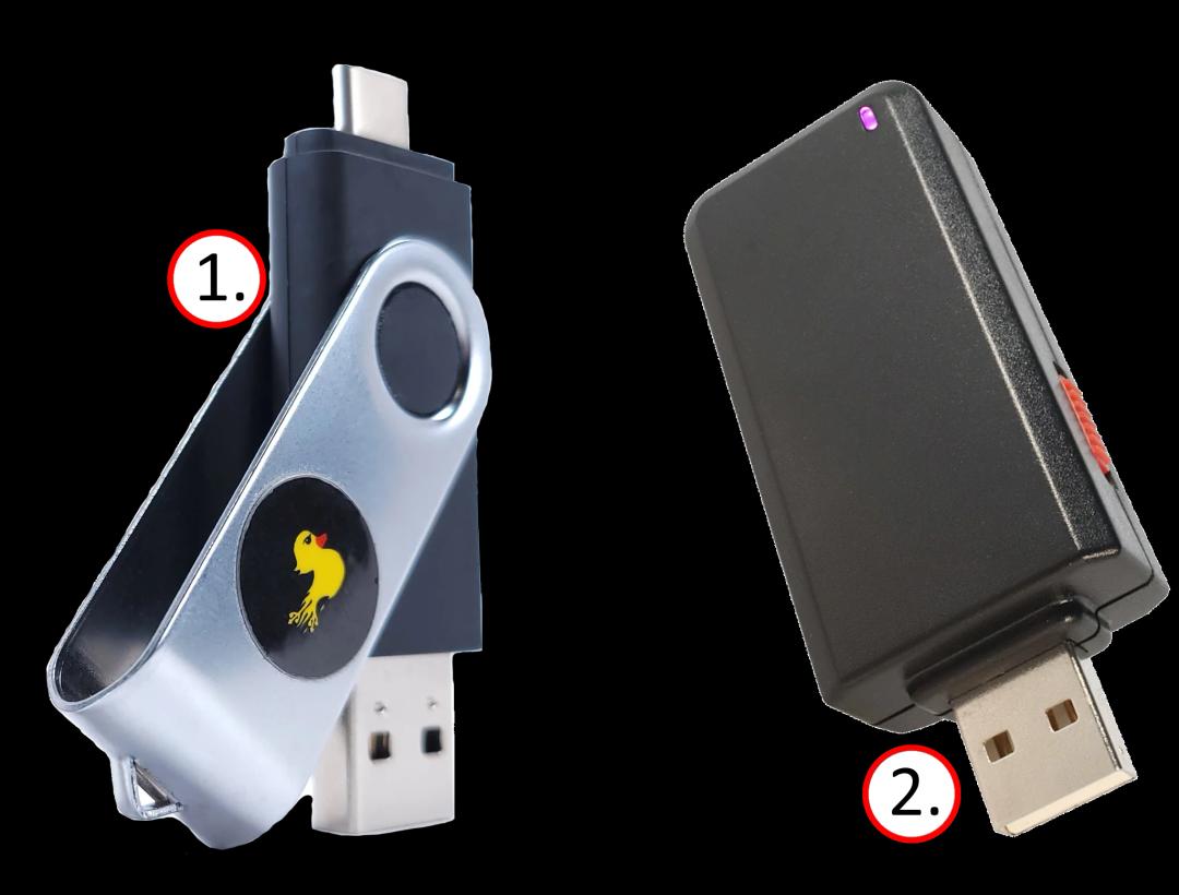 Abbildung 2: Rubber Ducky (1) und Bash Bunny (2) von hak5