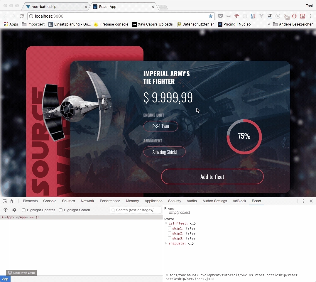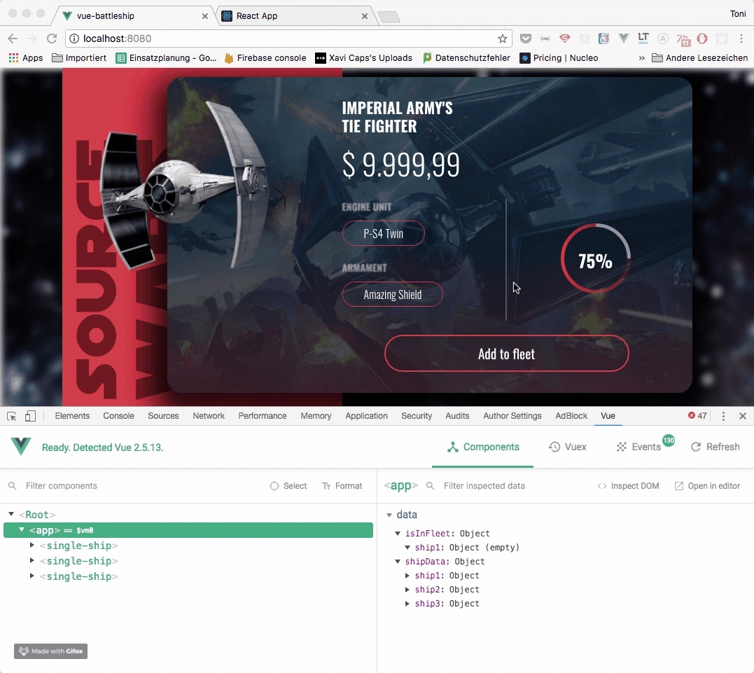 Battleship Applikation in React Battleship Applikation in Vue.js