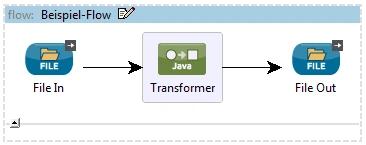 Man könnte eine oder beide Dateischnittstellen gegen andere Schnittstellen austauschen, die Daten „one way“ verarbeiten: Einen JMS-Endpunkt, eine FTP-Komponente, etc. An der Struktur würde sich dadurch nichts ändern. Dem Transformer in der Mitte ist es egal, woher sein linker Nachbar die Daten erhält und wie sein rechter Nachbar sie weiterschickt. Er sieht jeweils die Message, sonst nichts.